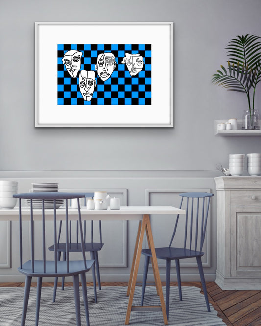 Shani Krebs Print | 4 Faces - Check Landscape Blue