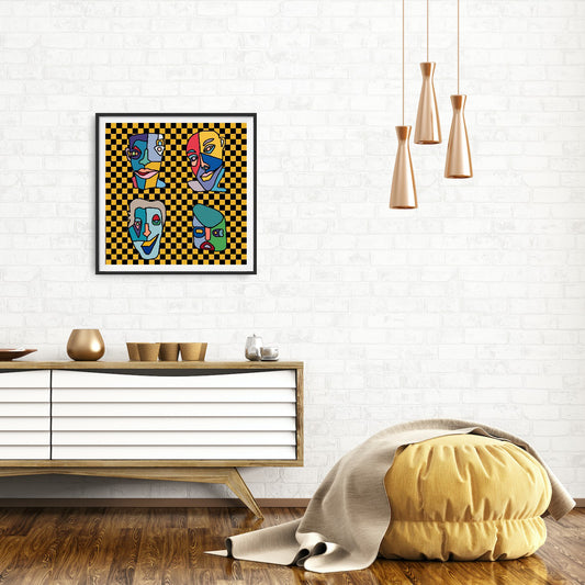 Shani Krebs Print | 4 Faces - Check Mustard Yellow